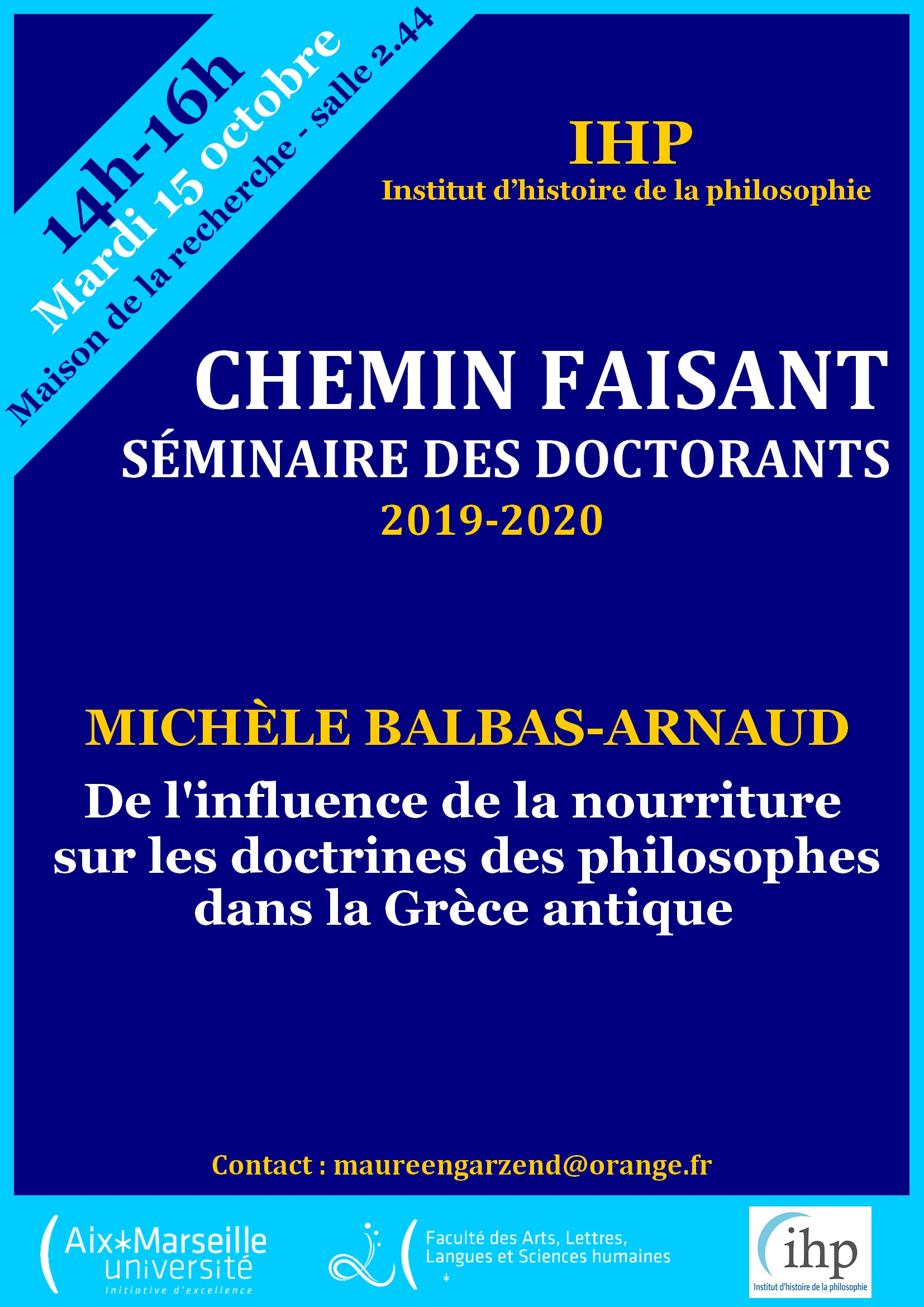 Séminaire des doctorants - Michèle Balbas-Arnaud, « De l'influence de la nourriture sur les doctrines des philosophes dans la Grèce antique »