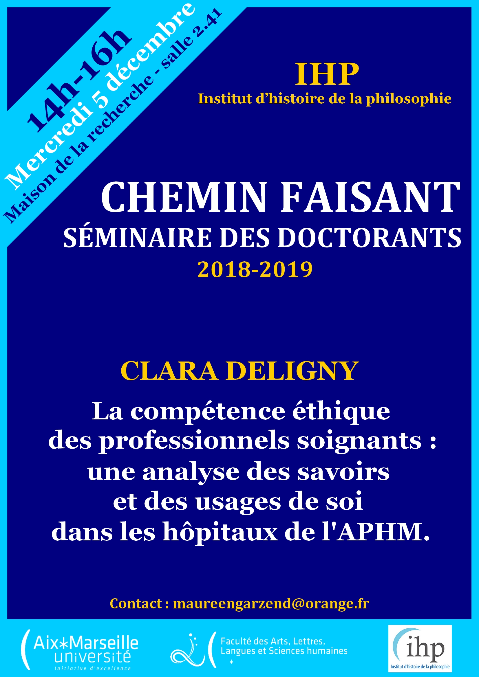 Séminaire des doctorants - Clara Deligny : La compétence éthique des professionnels soignants : une analyse des savoirs et des usages de soi dans les hôpitaux de l'APHM